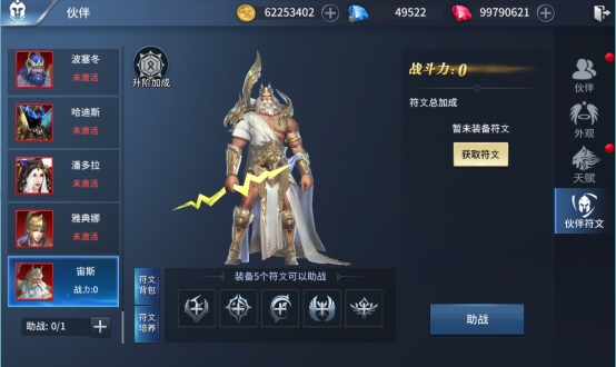 (3)伙伴符文:给伙伴镶嵌符文后,可以获得战斗力加成