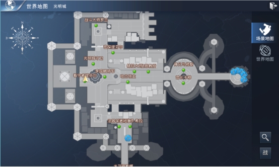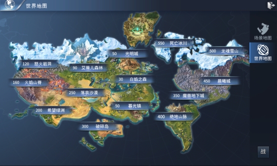 (1)地图:分“当前地图”和“世界地图”。地图系统中有对应的“NPC”、“怪物”和“传送阵”