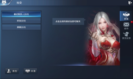 (1)好友:玩家可以添加其他玩家为好友,之后就可以方便的和对方1对1聊天了,如果碰到了不想结识的人也可以将其屏蔽。