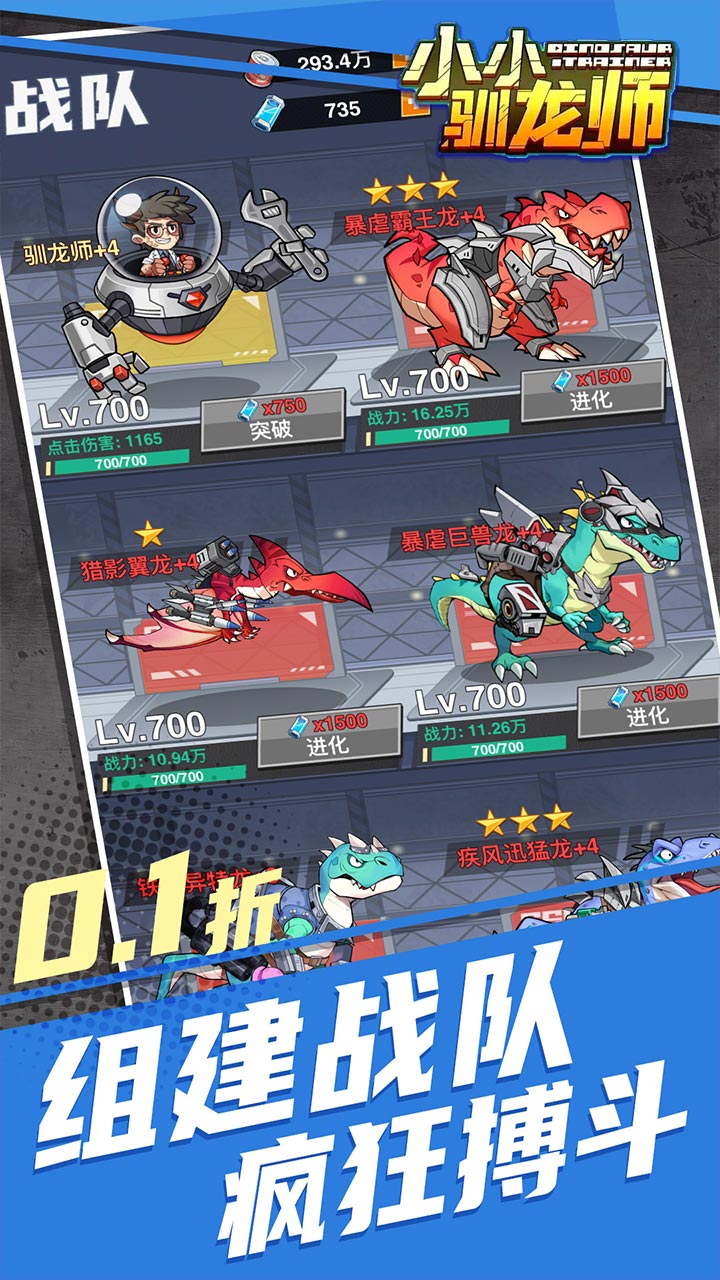 小小驯龙师是一款集恐龙收集,培养,PVE剧情副本,装备收集,交互系统,跨服战斗为一体的回合挂机类闯关游戏。 在游戏中,玩家将化身驯龙师,指挥自家发现里的远古恐龙们排兵布阵,研究恐龙进化奥秘。游戏中有很多关卡,节奏较快,操作简单,容易上手,玩家只需要跟着点点点,战力就能得到疯狂提升,轻量化则让它具备随时随地挂机摸鱼的特点,不要花费长时间进行游戏,利用碎片化时间也能玩。除此之外,游戏本身的设计是将恐龙和广受机甲融合进行了一个结合,形象上也非常霸气。